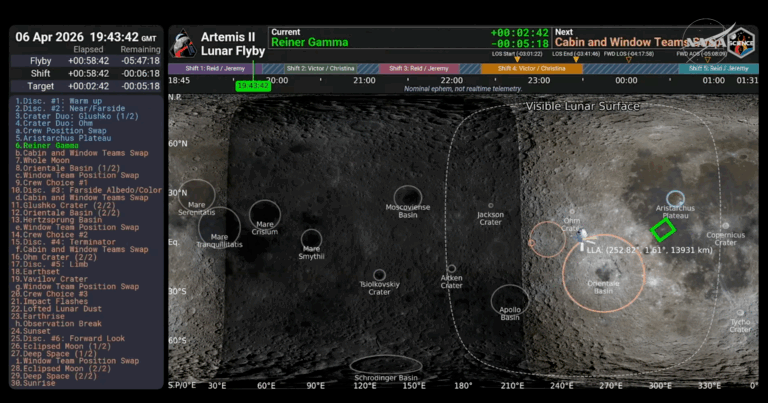 Enquanto a Orion contornava a Lua, os astronautas testemunharam o “Earthset”, quando a Terra desapareceu atrás do horizonte lunar, e o “Earthrise”, quando a Terra voltou a aparecer. Esses eventos visuais são raros e emocionantes, oferecendo uma perspectiva única da relação entre a Terra e a Lua.