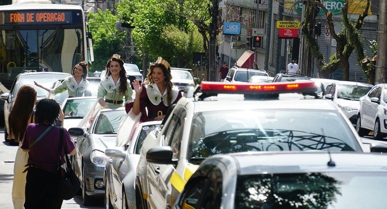 Rainha, princesas e embaixatrizes percorrem principais vias da cidade para convidar a comunidade ao evento