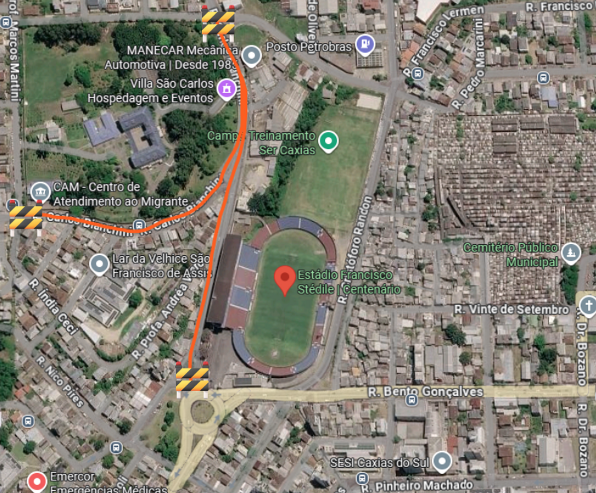 As intervenções ocorrem na Rua Carlos Bianchini, nos cruzamentos com as ruas Professor Marcos Martini e Dom João Batista Scalabrini. Também haverá restrição na Rua Thomás Beltrão de Queiróz até a rótula com a Rua Bento Gonçalves, que permanecerá liberada ao tráfego.