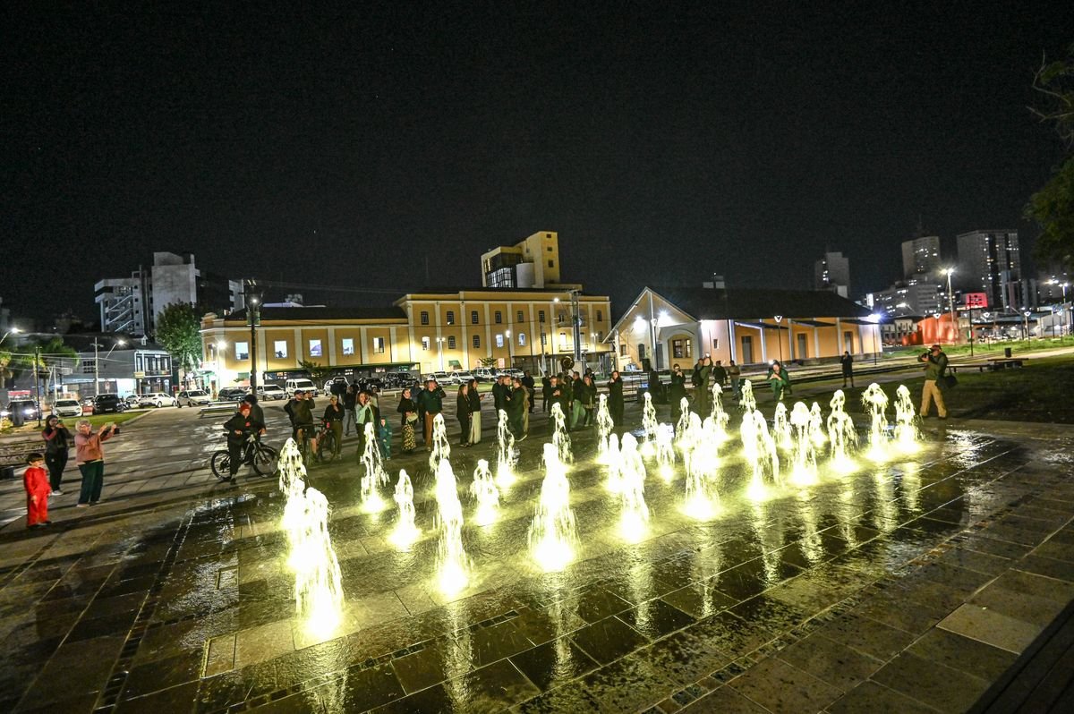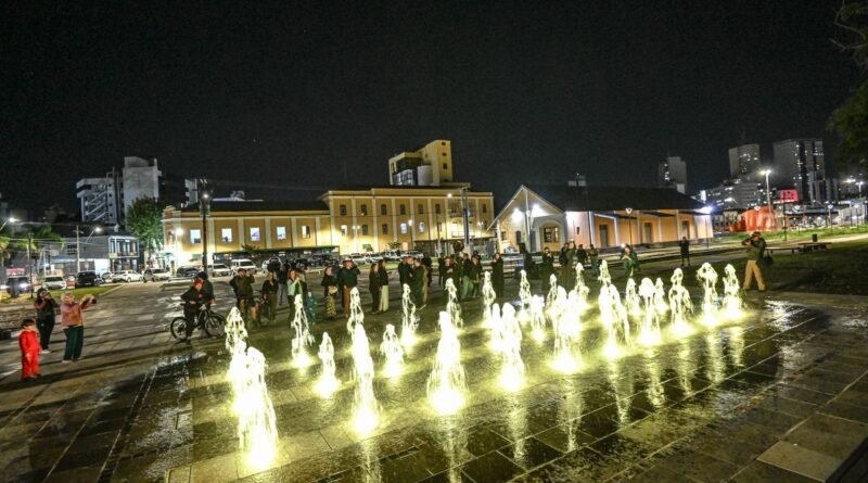 Estação Férrea ganha fonte luminosa e reforça vocação de lazer e cultura em Caxias do Sul
