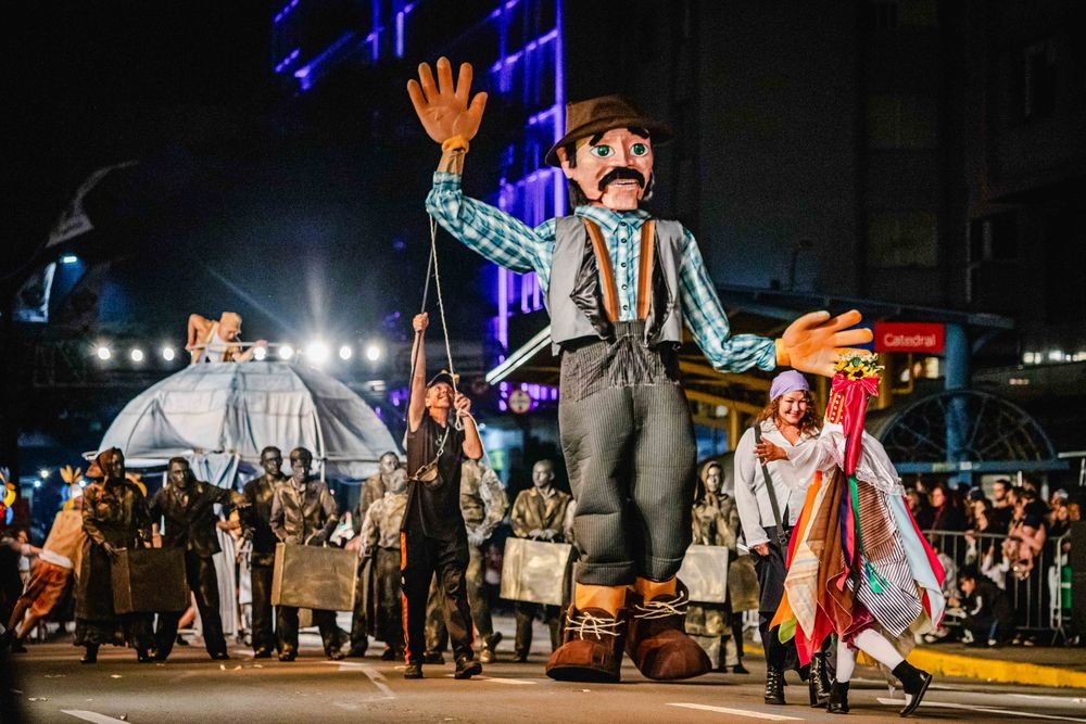 O primeiro Desfile Cênico-Musical da 35ª Festa Nacional da Uva atraiu uma grande plateia ao Centro de Caxias do Sul na noite desta quinta-feira (19/02), em uma apresentação que combinou música, teatro e figurinos históricos para representar a trajetória da colonização italiana e a formação da identidade cultural da cidade.