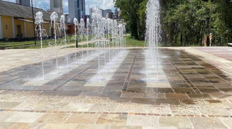 Fonte luminosa no pátio da Estação Férrea entra em funcionamento em Caxias do Sul