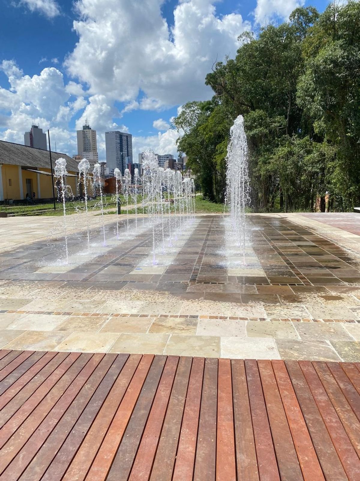 Fonte luminosa no pátio da Estação Férrea entra em funcionamento em Caxias do Sul