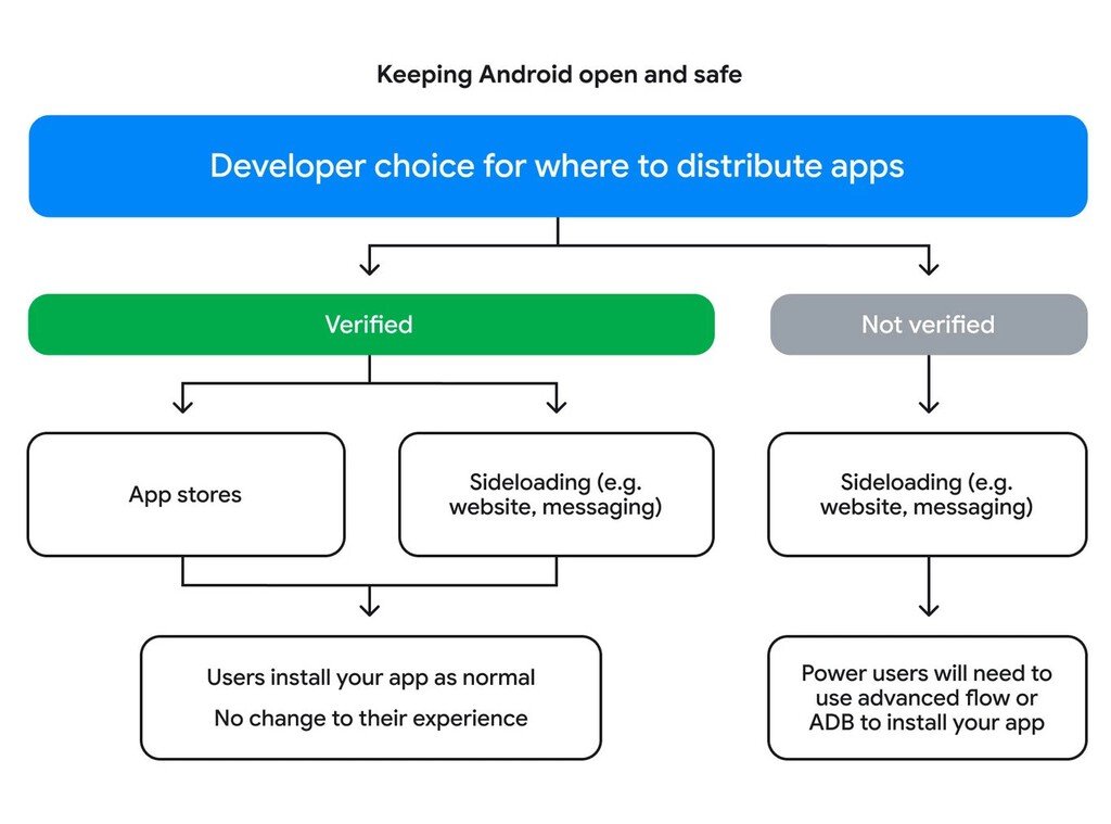 Com a introdução do Android Developer Console em 2025, o Google criou um caminho alternativo para aqueles que desejam distribuir seus aplicativos fora da Play Store. A primeira fase da implementação ocorrerá em setembro de 2026 no Brasil, Indonésia, Singapura e Tailândia, seguida por uma expansão global em 2027.