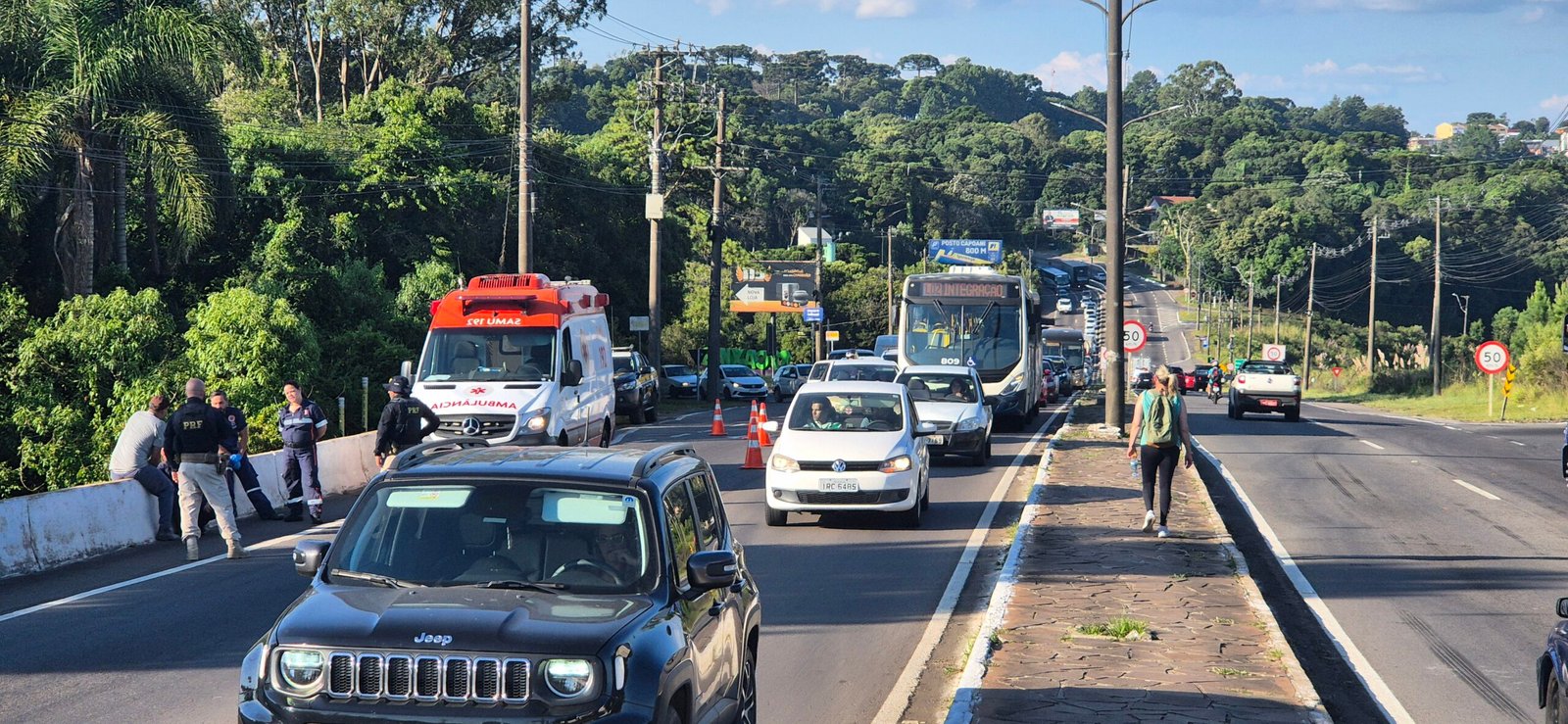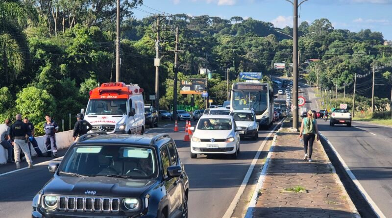 Ocorrência no viaduto que liga a BR-116 à RSC-453 mobilizou SAMU e Polícia Rodoviária Federal, com bloqueios e controle de tráfego nos dois sentidos