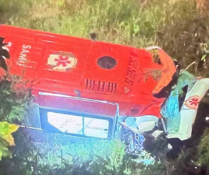 Durante a tentativa de fuga, o condutor perdeu o controle da ambulância, que acabou saindo da pista e caindo em uma ribanceira de difícil acesso às margens da rodovia.