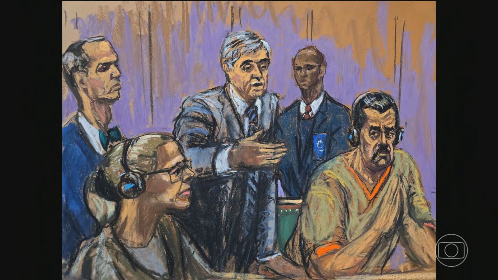 Na cobertura da audiência, a imprensa internacional não conseguiu obter imagens ou vídeos, uma vez que a captura de imagens em tribunais federais nos Estados Unidos é proibida. Os únicos registros permitidos são esboços feitos por artistas durante as audiências.