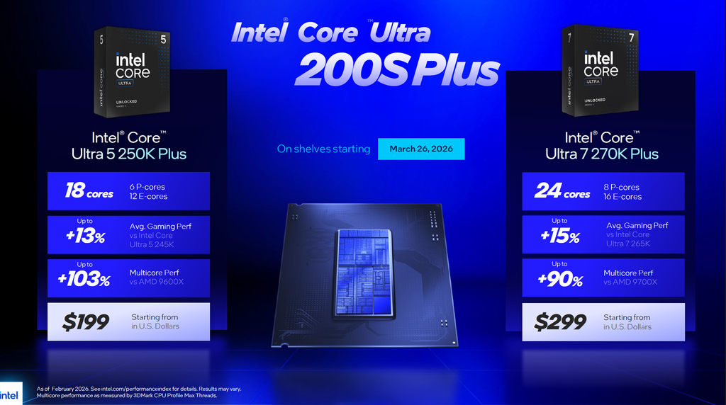 Intel apresenta novos processadores Core Ultra 200S Plus com aumento de 39% na performance e redução de 33% no preço