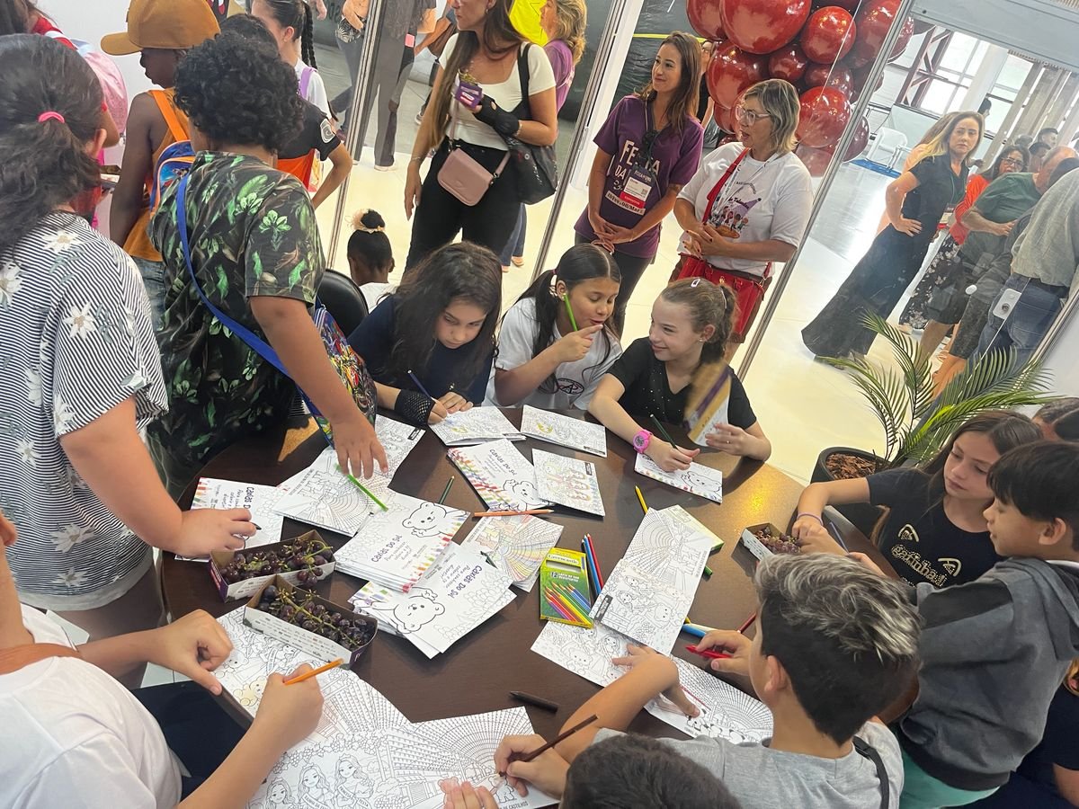 Os livros de colorir distribuídos no estande da Prefeitura de Caxias do Sul têm sido um dos atrativos mais procurados pelas crianças e suas famílias durante a 35ª Festa Nacional da Uva. A iniciativa oferece uma opção de entretenimento educativo e lúdico dentro do espaço de exposição, onde os pequenos podem interagir com temas relacionados à cultura local, à vitivinicultura e ao universo da festa.
