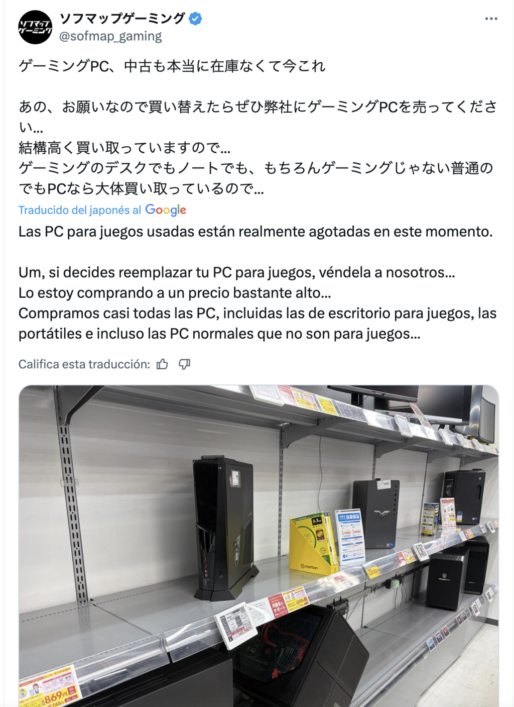 Em Akihabara, famoso centro de eletrônicos em Tóquio, uma loja adotou uma abordagem inusitada ao solicitar que seus clientes vendessem seus computadores usados. A Sofmap Gaming, reconhecendo a escassez, fez um apelo direto: “Computadores para jogos, mesmo os de segunda mão, estão realmente em falta no momento.”