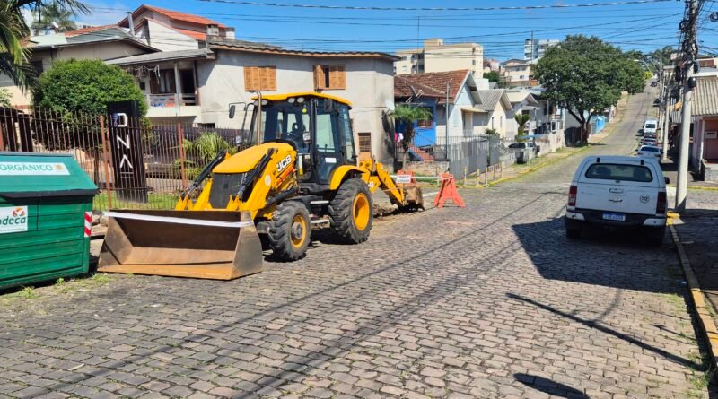 Manutenção em rede de drenagem provoca bloqueio na Rua Tiradentes, no bairro Sagrada Família