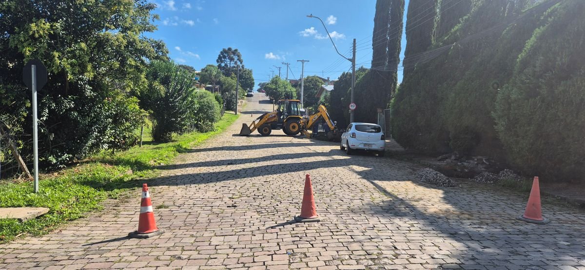 A Prefeitura de Caxias do Sul realiza uma obra de implantação de rede de drenagem pluvial na Rua Pedro Giacomet, no bairro Bela Vista, o que tem provocado bloqueio de trecho da via para a execução dos serviços.