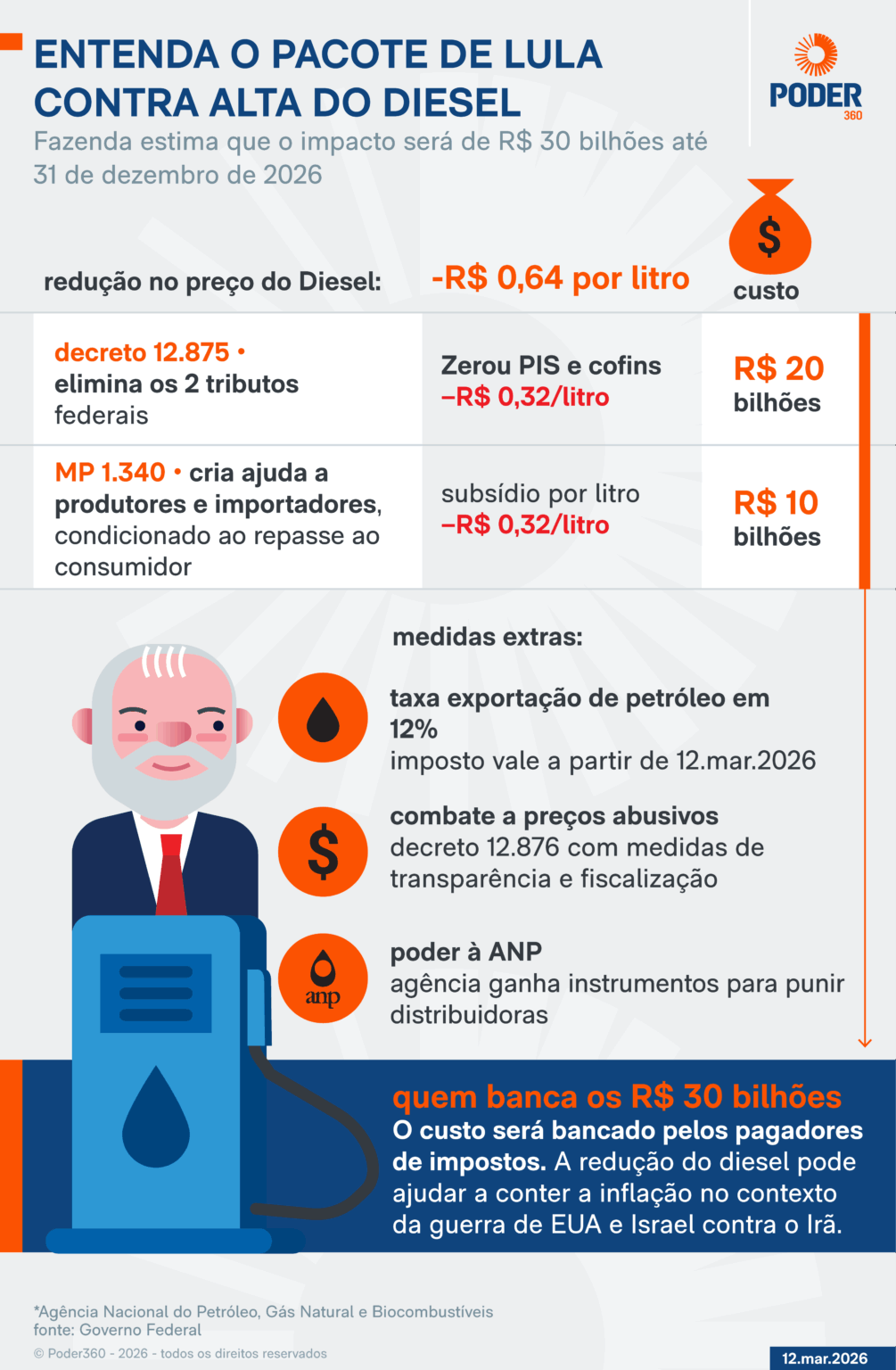 Combinadas, as duas iniciativas visam reduzir em R$ 0,64 o preço do diesel, com um custo total estimado em R$ 30 bilhões.