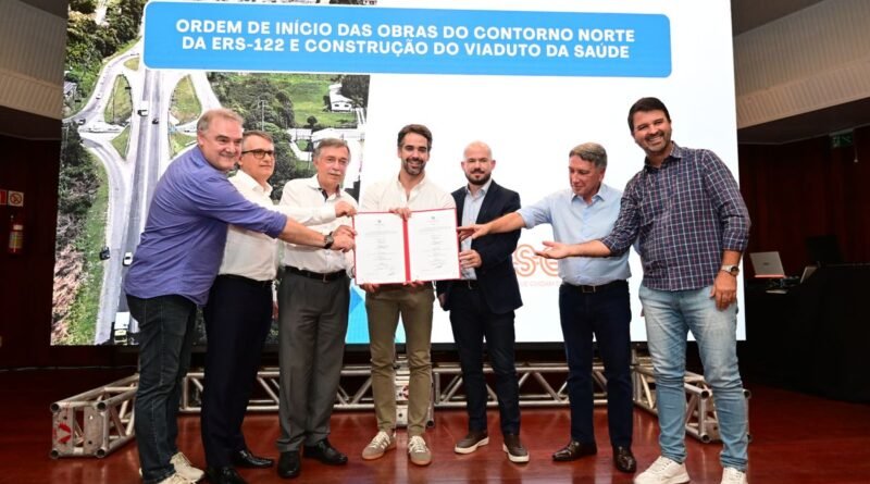 A assinatura que marcou o início das obras contou com a presença do governador Eduardo Leite, do prefeito Adiló Didomenico, além de lideranças regionais e representantes da concessionária responsável pela rodovia.