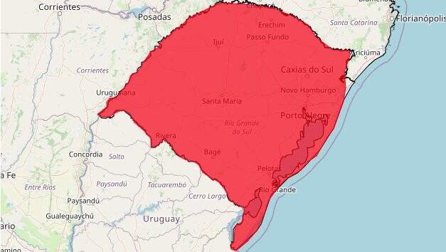 Rio Grande do Sul em alerta vermelho para tempestades, segundo Instituto Nacional de Meteorologia