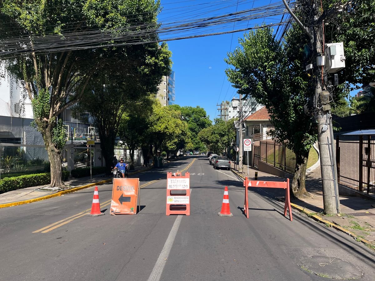 - Rua Duque de Caxias terá interrupção parcial no trecho entre a Rua Dr. Montaury e a Rua Carlos Dutra Viana. Os motoristas que trafegam descendo a via em direção ao Pio X devem optar pelo desvio pela Rua Francisco Camatti.