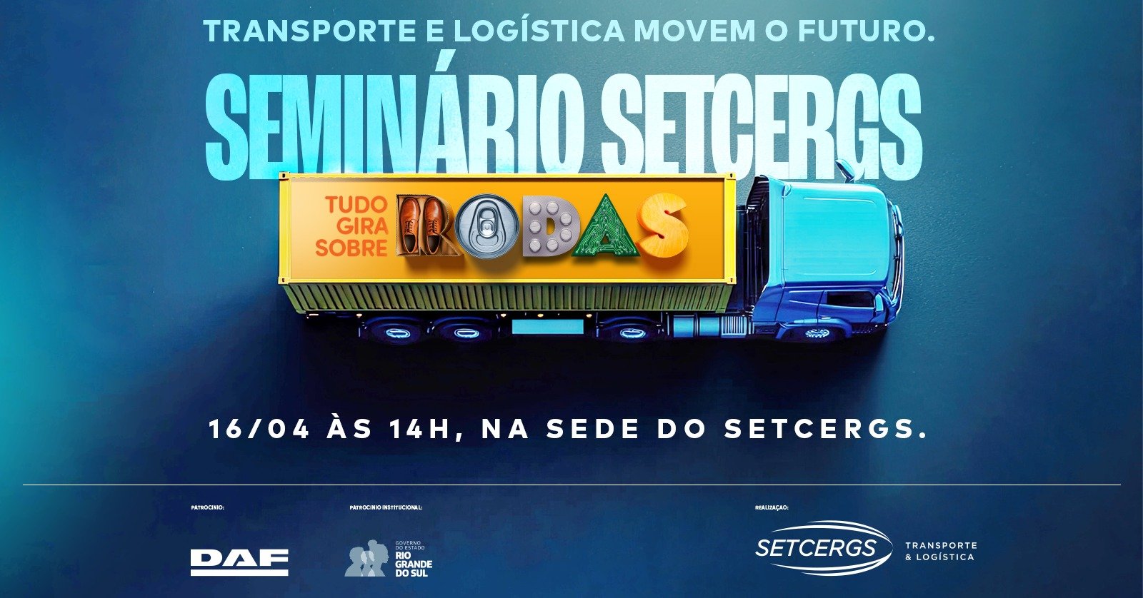O Sindicato das Empresas de Transportes de Carga e Logística no Rio Grande do Sul (SETCERGS) promove, no dia 16 de abril, um seminário voltado ao setor de transporte e logística, reunindo lideranças empresariais e representantes de entidades do Estado.
