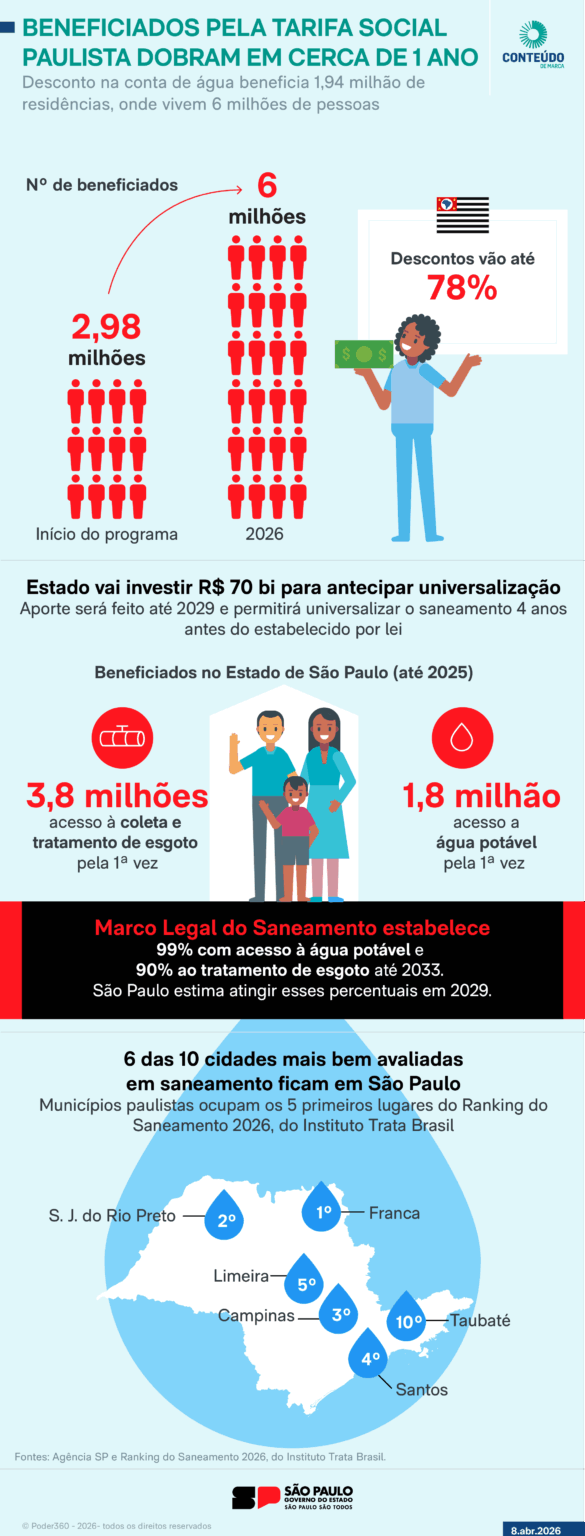 Um infográfico detalhando a Tarifa Social Paulista e o saneamento básico está disponível para consulta.