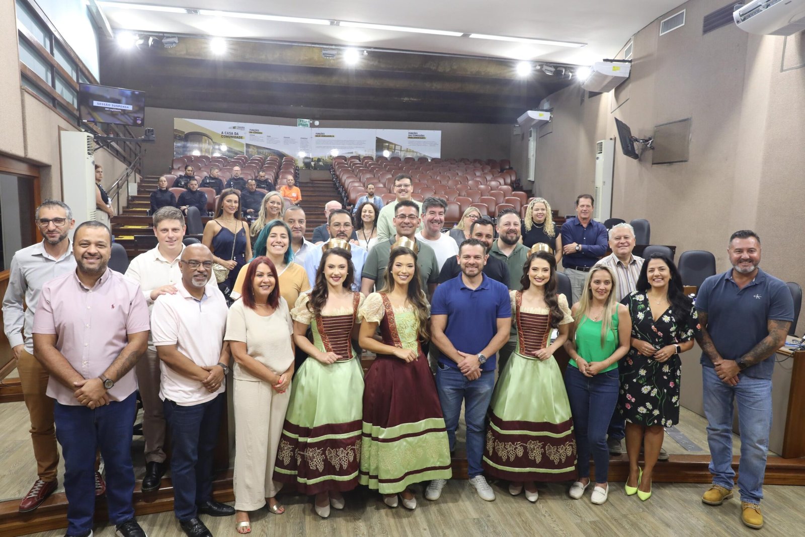 A Rainha e as Princesas da Festa da Uva 2026 estiveram na Câmara Municipal de Caxias do Sul na manhã desta quinta-feira (12) para divulgar a programação oficial do evento e convidar a comunidade a participar da próxima edição. O trio ocupou espaço na tribuna durante a sessão ordinária para reforçar a relevância da festa para o desenvolvimento econômico, cultural e turístico do município e da Serra Gaúcha.
