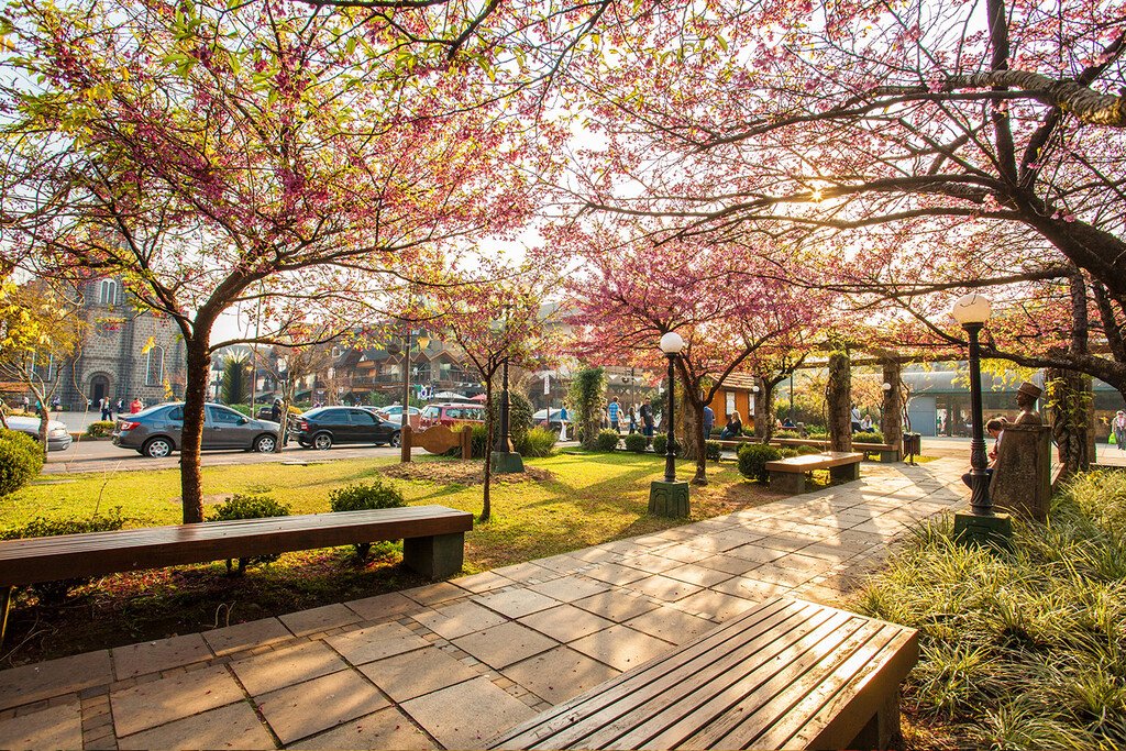 O centro de Gramado é ideal para caminhadas curtas e paradas espontâneas. Em poucos passos, é possível visitar a igreja matriz, o comércio local e cafés tradicionais, em um ambiente com ruas limpas e arborizadas.
