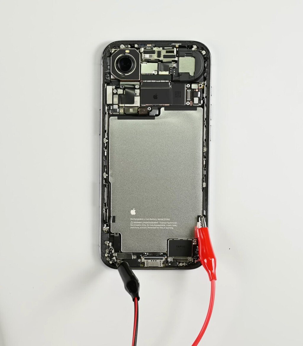 O resultado é um aparelho que utiliza cada milímetro disponível, com a placa-mãe concentrada em um lado e os cabos direcionados para cima, evitando cruzamentos na tela, e uma bateria que preenche todo o espaço disponível.