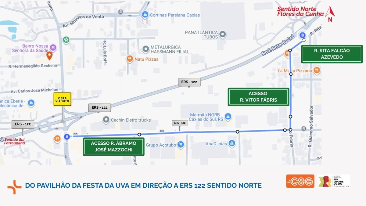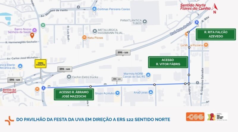 Apesar da restrição, o trânsito segue normalmente na pista principal da ERS-122, sobre o viaduto. O bloqueio se concentra apenas na via inferior, utilizada para deslocamentos locais.